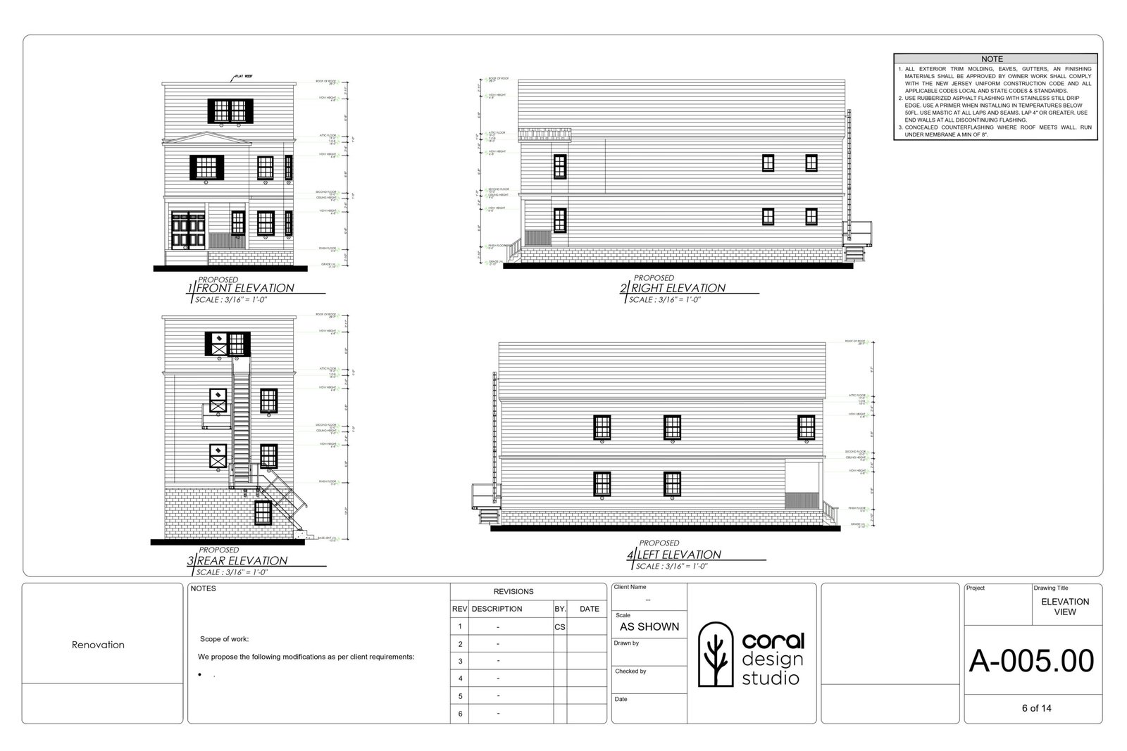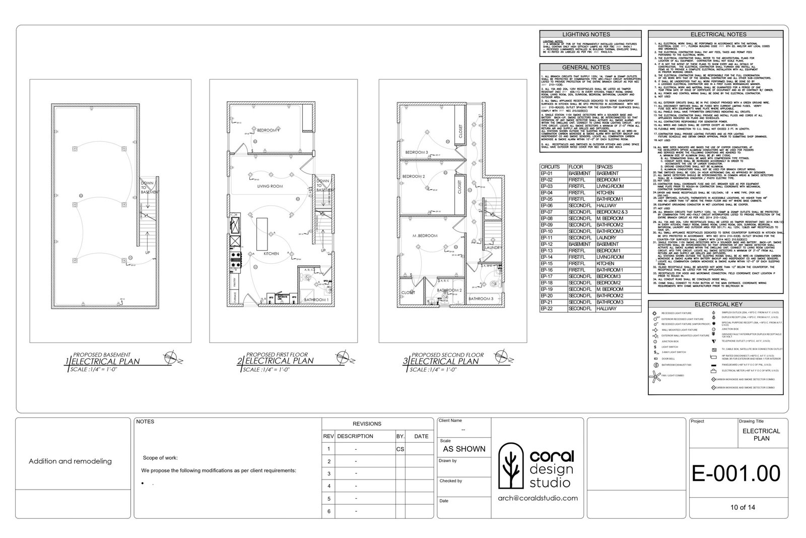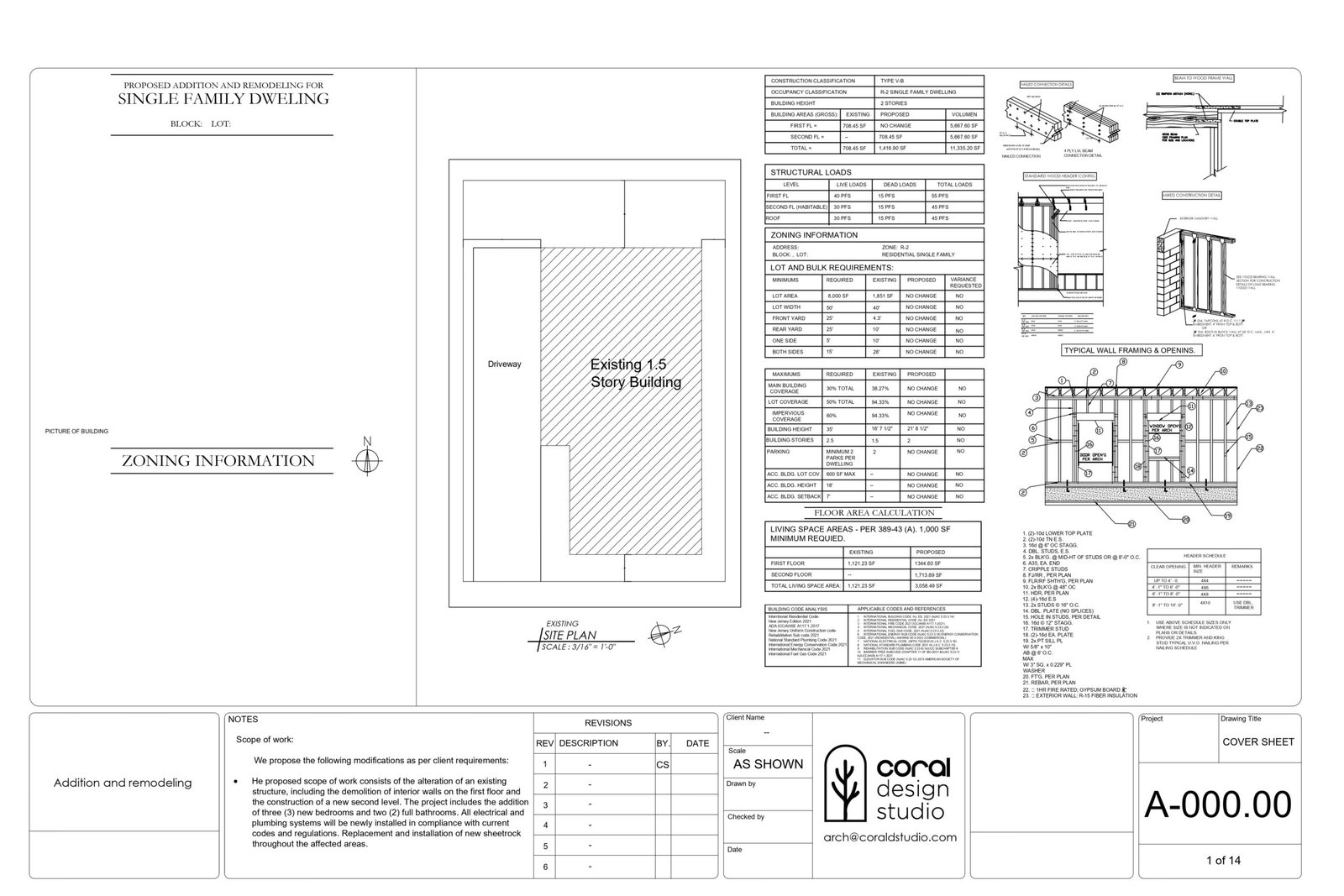 Coral Design Studio specializes in producing complete, permit-ready drawing sets for residential and commercial projects. Our team prepares architectural, structural, mechanical, electrical, and plumbing plans that meet all local codes and requirements.